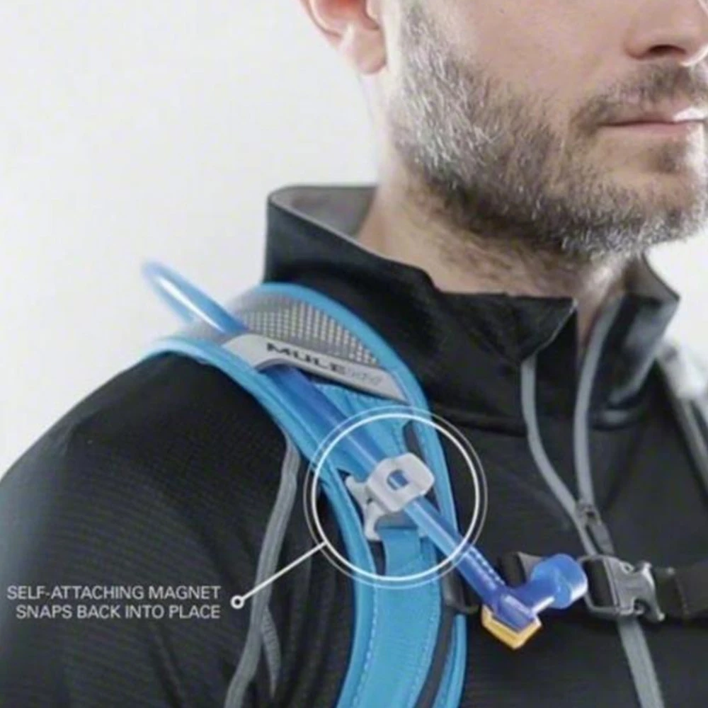 You can stow your drinking tube in one easy clip, which means you donât have to hesitate and break your stride. Compatible with any Camelbak reservoir, the tube rotates while the magnet stays in place and the self-sealing magnet will snap back into place. Â