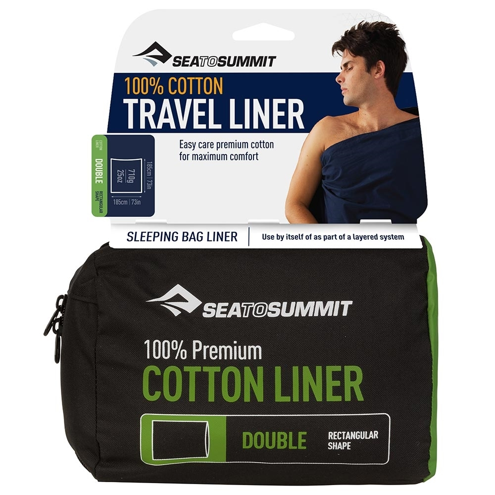 For extra comfort for your sleeping bag or hostel bed, line them with the economical and soft Double Cotton Travel Liner from Sea to Summit.
