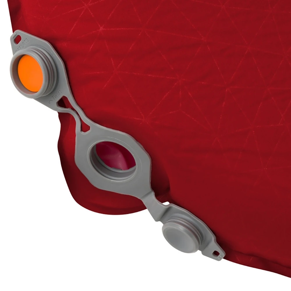 Rugged durability meets outback royalty. With comfort that climbs to eight centimetres in height and a laminated TPU anti-slip print on the base of the mat, camp in the clouds while grounded on the gradient. PU foam engineered with Delta Core Technology reduces weight and bulk, without trimming the fat on any supportive qualities. With a consistent warmth along the full length of the mat, plus the soft-touch stretch upper fabric – wake up warm after easy dreaming. Be set up by sundown and backpacking by daybreak, owed to diagonal supporting foam walls for compact rolling and a multi-functional valve for effortless inflation and deflation.