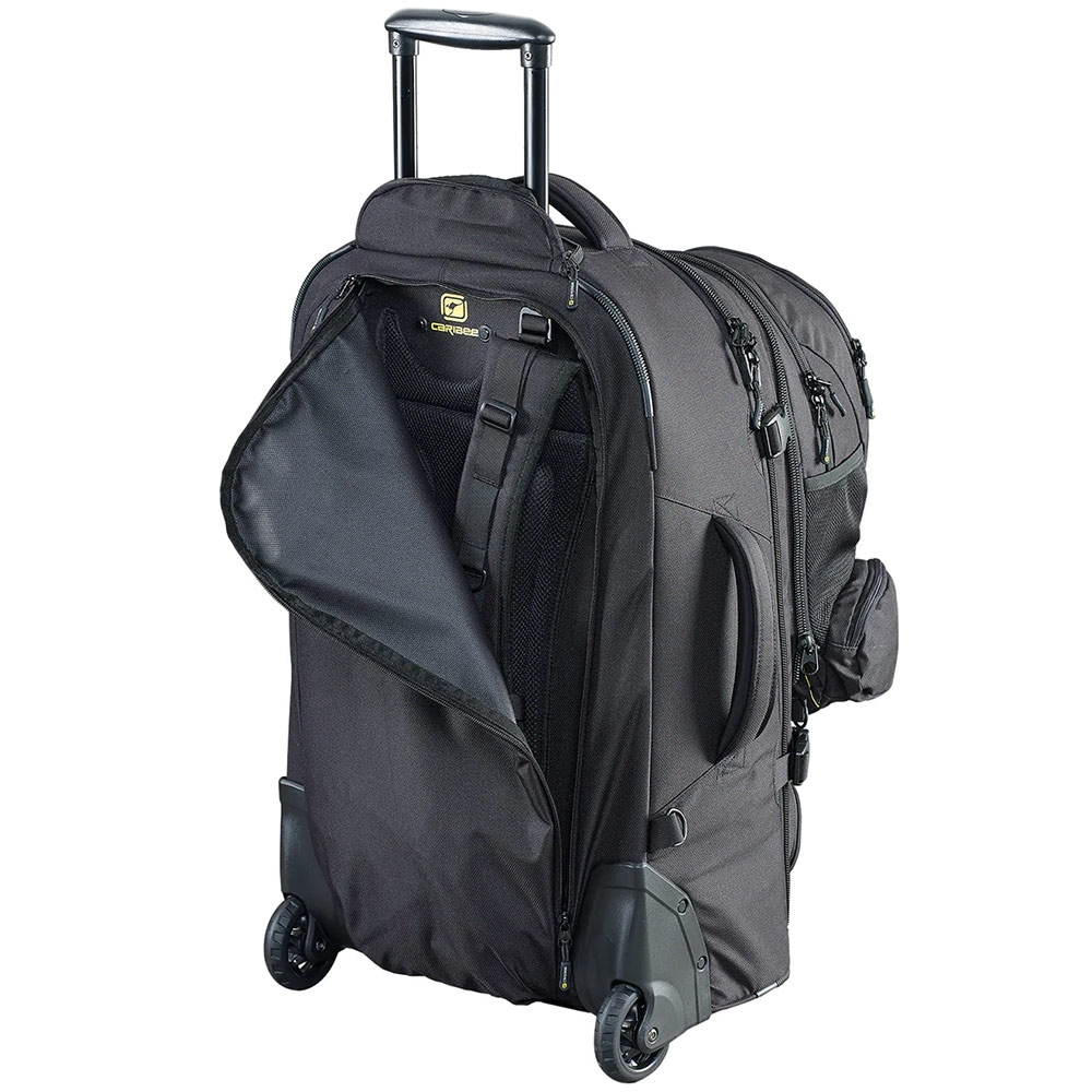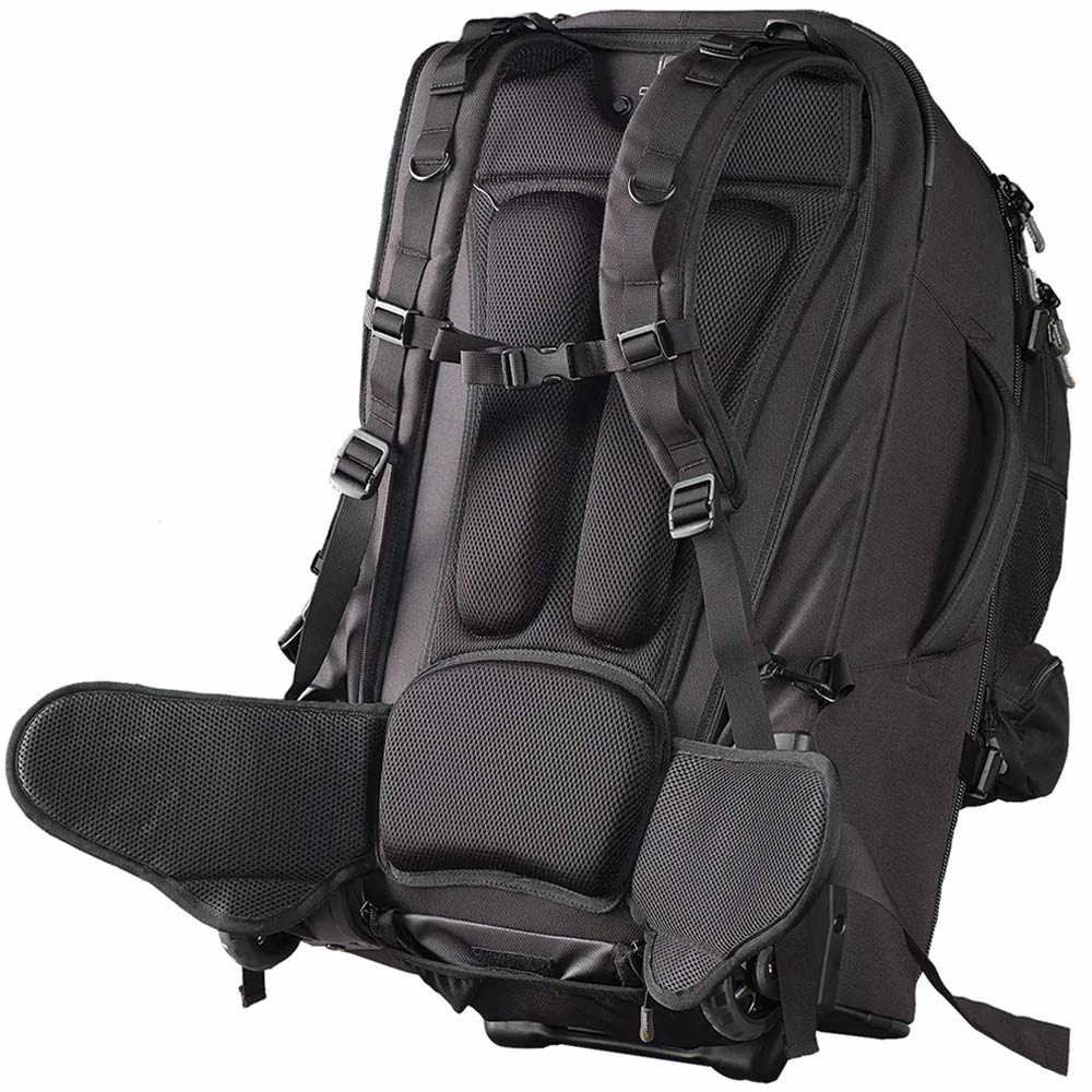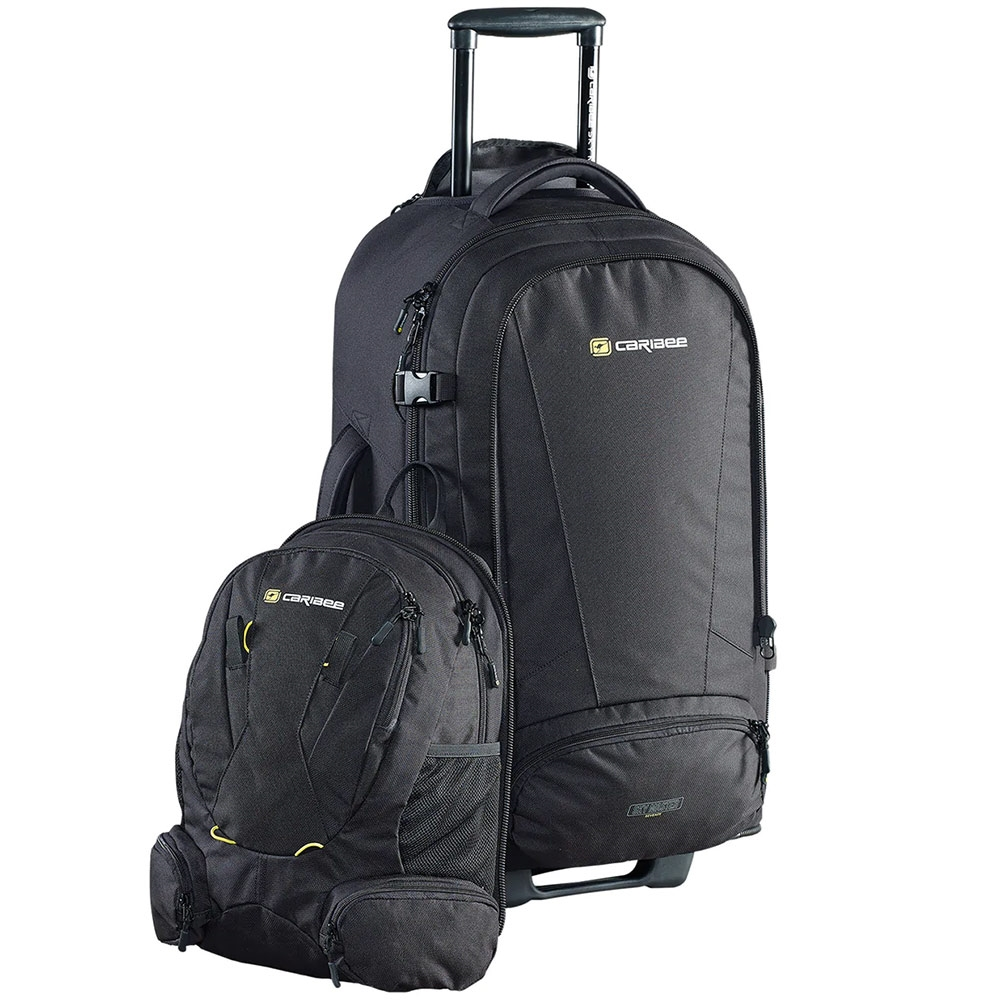 This pack is constructed from strong, high-tensile polyester with a large, divided main compartment featuring multiple internal zip compartments. With internal and external compression straps for securing your gear, this pack also has a concealable padded harness that can be zipped away in transit. Zips on the Sky Master can also be locked, providing peace of mind while out of sight. Plus, hauling behind you is smooth and effortless thanks to all-terrain wheels and an aluminium handle. There’s no need for an extra bag for sightseeing or carry on either, owing to a detachable daypack that zips onto the main pack.