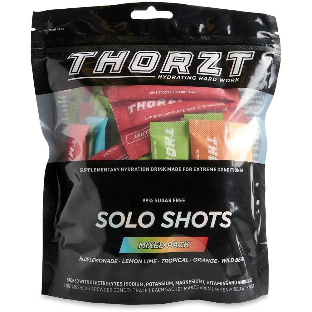Thereās nothing worse than the dreaded fatigue, dizziness and nausea that comes from dehydration. Keep up your fluid intake and replace lost electrolytes with the Mixed Flavour Solo Shot Hydration Sachets from Thorzt.