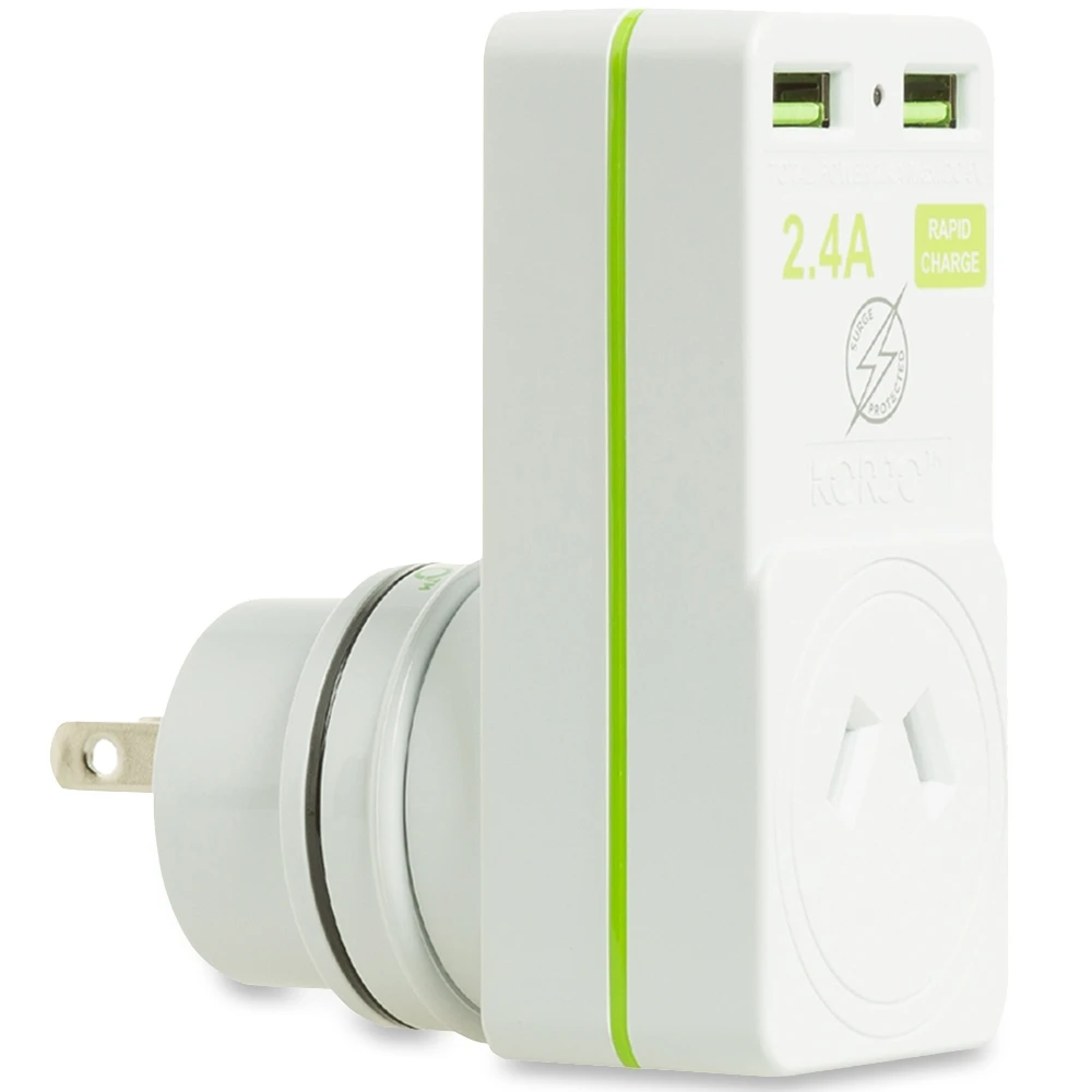 With a colour-coded trim on both the packaging and adaptor itself for easy identification instore and in your pack, this gadget is a true-blue travel companion in Japan, the USA, Canada, and Mexico. For your peace of mind on the plane, it’s been approved by the Australian Electrical Authorities as the smallest, safest, and smartest adaptor, boasting an unbeatable reputation in the Aussie market. Accepting all 2-pin Australian and New Zealand appliances, it also features 2 x USB devices with rapidly charging sockets so you can power the more personal portable items too.